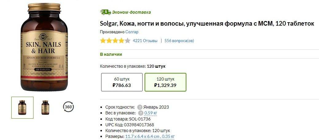 На территории РФ купить витамины Солгар для волос, ногтей и кожи непросто, поэтому их часто заказывают на Айхерб. Препарат выпускают в нескольких дозировках – от 400 до 10 000 ME. Чтобы подобрать необходимую дозировку, следует сдать соответствующий анализ крови. В зависимости от результата врач подберет необходимую вариацию витаминного комплекса и назначит схему его приема.