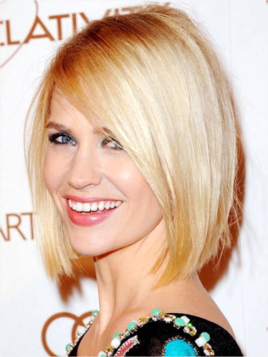 Прекрасно смотрится модная женская стрижка «боб», дополненная длинными прядями, расположенными в районе скул. В результате лицо будет вытянуто, будет казаться более худым.