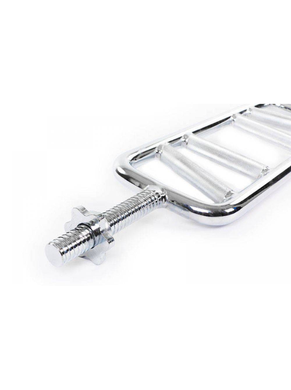 Очень похож на предыдущий вариант грифа, но имеет небольшое отличие. W-образный гриф сильнее изогнут, что придает комфорта и большей эффективности при использовании в таком упражнении, как французский жим. Все дело в том, что этот гриф дает возможность держатся нейтральным хватом (ребро ладони направлено вверх), перенося всю нагрузку на трицепс.