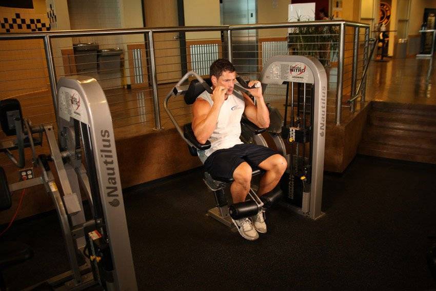 Тренажер — идеальный вариант для выполнения упражнений в зале для мужчин. Уровень нагрузки может варьироваться в зависимости от физических возможностей спортсмена, так что скручивания подойдут как начинающим, так и профессионалам. Для выполнения нужно установить сиденье тренажера на подходящую высоту и закрепить ноги снизу. Следует убедиться, что поясница прочно прижата к спинке. Предварительно выставив желаемый вес, необходимо взяться за рукоять обеими руками и приступить к скручиваниям. Количество повторений — от 10 до 15 раз, подходов — 3–4. Делая упражнение 1–2 раза в неделю, человек без труда сможет целенаправленно накачать пресс и избавиться от проблемных зон в области живота.