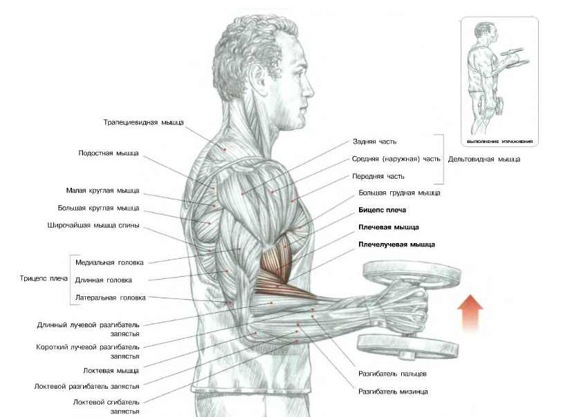 Узкий хват целенаправленно прокачивает задние пучки дельт, прямой хват – передние и средние отделы плеча.