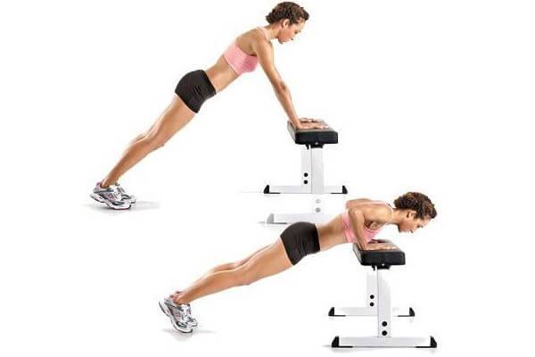 - Скручивания на скамье и наклон вниз: 20 раз.