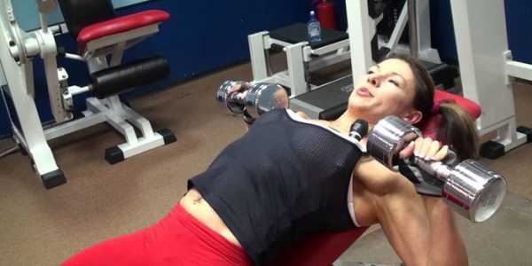 - Подъем гантелей лёжа под углом 30 градусов: 15 раз.