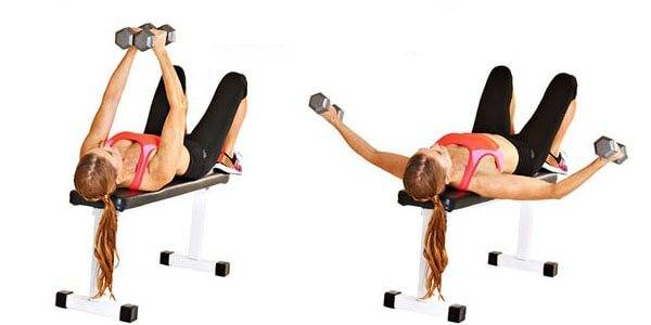 - Выполните каждое упражнение по 15-20 раз, в зависимости от веса гантелей и физподготовки, итого 3 круга.