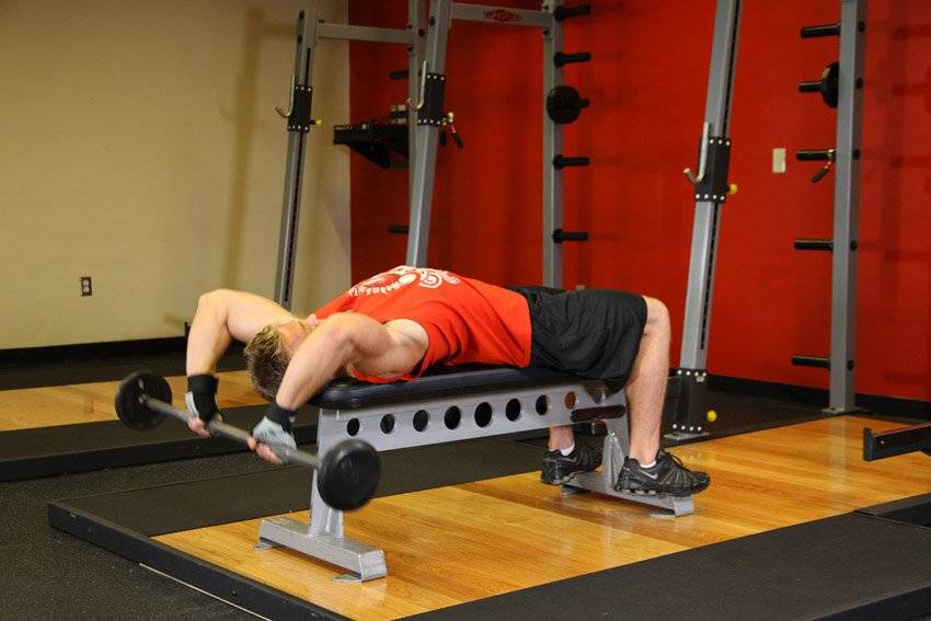 Упражнение пуловер со штангой в положении лежа с поддержкой спины
