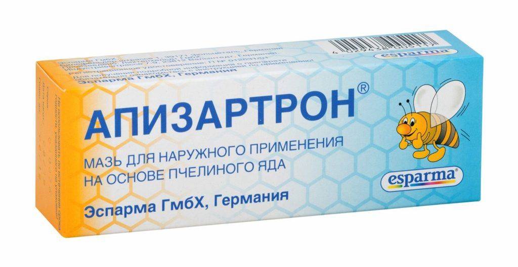 - Апизартрон. Главными тремя действующими веществами препарата являются пчелиный яд, изотиоцианаталлил и метилсалицилат. Мазь оказывает обезболивающее воздействие, помогает снять отеки. Показана к применению в случаях повреждения сухожилий, при радикулитах, невритах, невралгиях и болезнях опорно-двигательной системы.