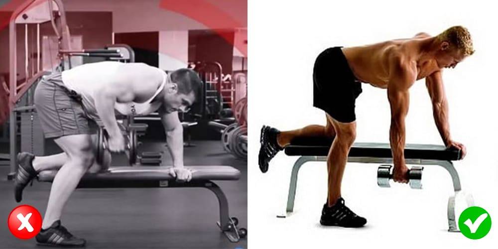 Неточности в технике приводят к снижению эффективности тренировок. Кроме того, некоторые несоответствия при выполнении опасны для суставов или позвоночника. Необходимо снизить вес гантелей, сменить модификацию упражнения, если при выполнении тяги отмечают следующие признаки: