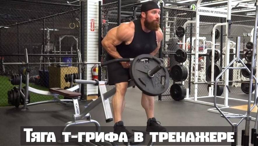 - Выполняя тягу т-грифа, вам не удастся накачать большую спину. Только в комплексе с базовыми упражнениями со свободными весами, можно добиться выдающихся результатов.