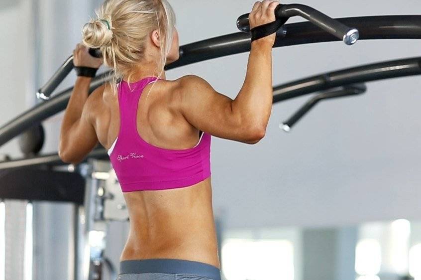 - При обратном (супинированном) хвате руки обхватывают перекладину так, чтобы ладони были обращены к лицу. Основная нагрузка в этой технике приходится на бицепсы. Для девушек применяют нейтральную ширину хвата, примерно на уровне плеч. Расположение кистей близко друг к другу увеличивает нагрузку на запястья и может привести к травме.
