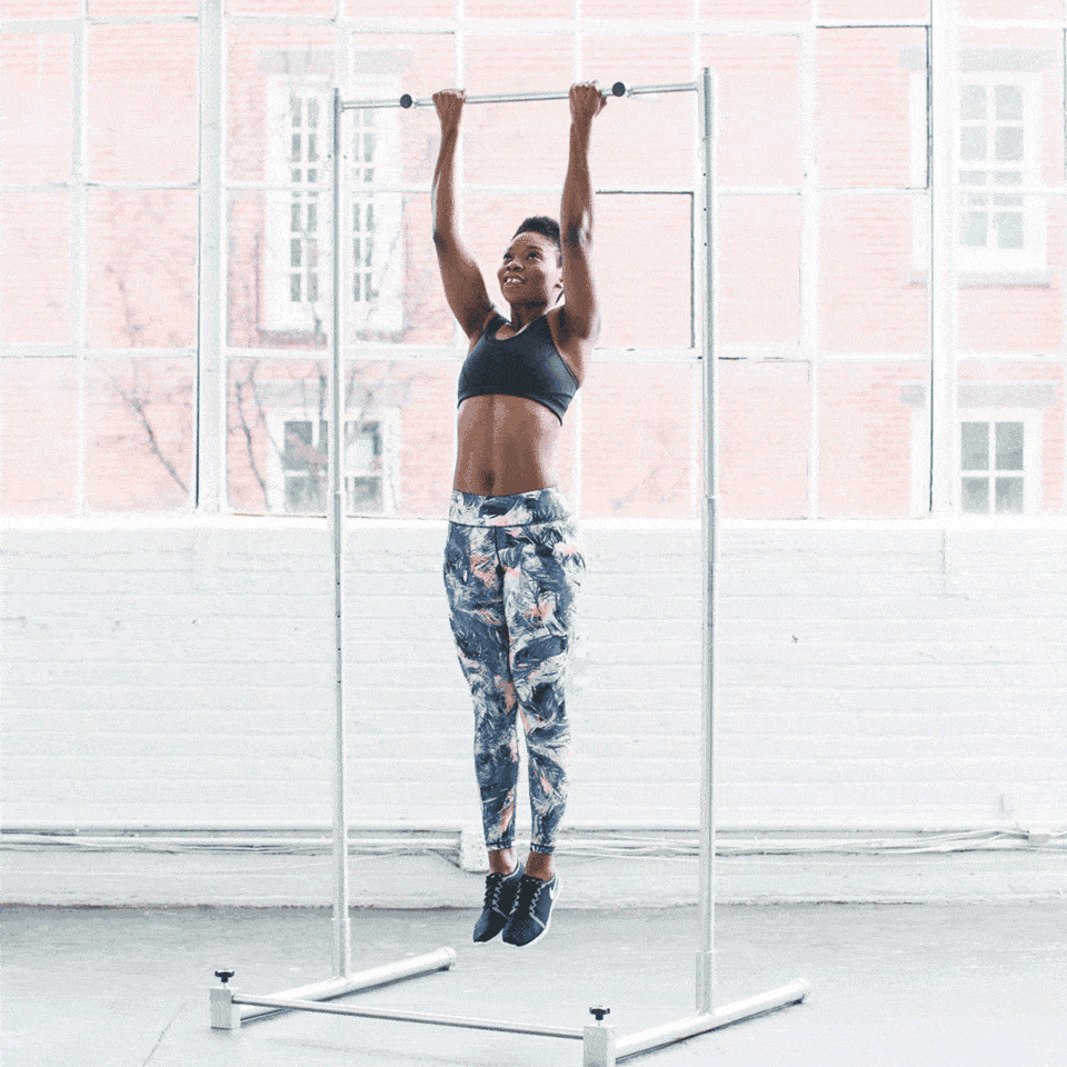 Если подъемы вам дались легко, попробуйте усложненный вариант этого элемента. Вся сложность заключается в том, чтобы не дать корпусу коснуться перекладины во время выполнения. Звучит легко, однако попробуйте это сделать! Откроем секрет: чтобы добиться этого, в момент подтягивания нужно выполнить резкий бросок ногами и одновременно с этим отжаться.