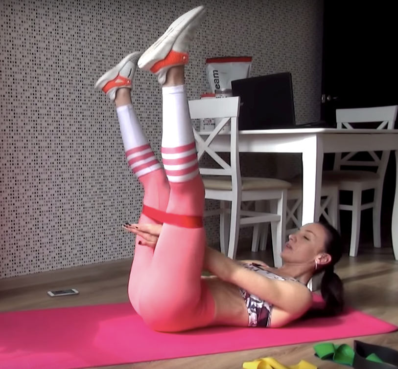 Несколько тренировок с фитнес-резинкой есть у Янелии Скрипник, которая ведет youtube-канал Fitnessomaniya. Все они посвящены главным женским участкам тела: бедрам и ягодицам. Вы можете чередовать их или объединить в одну супер-эффективную программу на 45 минут. В этом видео на 13 минут включены приседания, переставной шаг, мостик, подъем ног лежа на боку, ножницы.