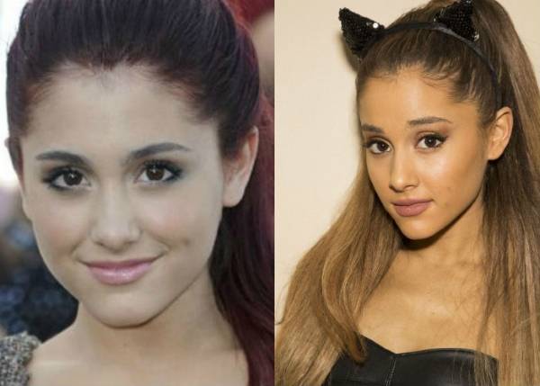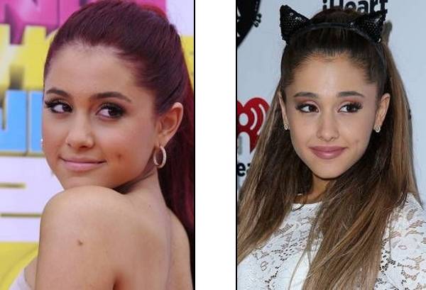 Нос Арианы стал меньше и изящнее, спинка носа стала гораздо уже, а кончик – слегка вздёрнутым. Слегка изменилась и форма ноздрей. Нельзя предположить, что нос похудел вместе со всем организмом. И никакой макияж не может визуально таким образом изменить форму носа.