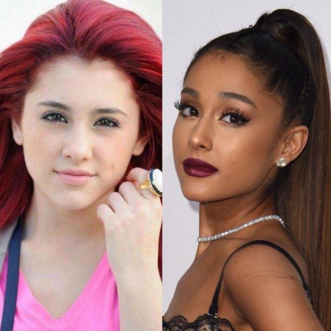 Если сравнить детские фотографии Арианы Гранде и снимки последних лет, можно подметить очевидные перемены. Если раньше у девушки был довольно крупный нос, то сегодня певица может похвастаться очень миленьким и аккуратным носиком.