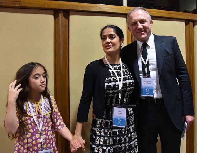 В марте 2007 года Хайек подтвердила слухи о помолвке с французским миллиардером, а также о своей беременности. В сентябре у них родилась дочь, названная Паломой Валентиной. Между тем в июле 2008-го Сальма разорвала помолвку, но в феврале 2009-го в Париже, в мэрии, брак Хайек и Пино был зарегистрирован. Это произошло в День святого Валентина. После этого, в апреле того же года, прошла повторная церемония, которая состоялась в Венеции, в Ла Фениче — старинном оперном театре.