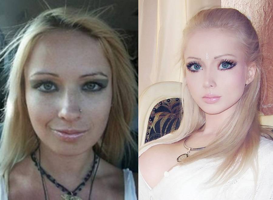 Появившись на публике в образе куклы впервые, живая барби Валерия Лукьянова произвела фурор и породила много сплетен. Поклонники не верят, в создание образа лишь с помощью макияжа и специальных линз. Считается, что девушка перенесла не одну пластическую операцию. А увидев Валерию Лукьянову без макияжа, не приходится сомневаться в использовании фотошопа на каждой фотографии.