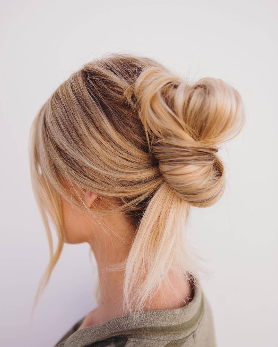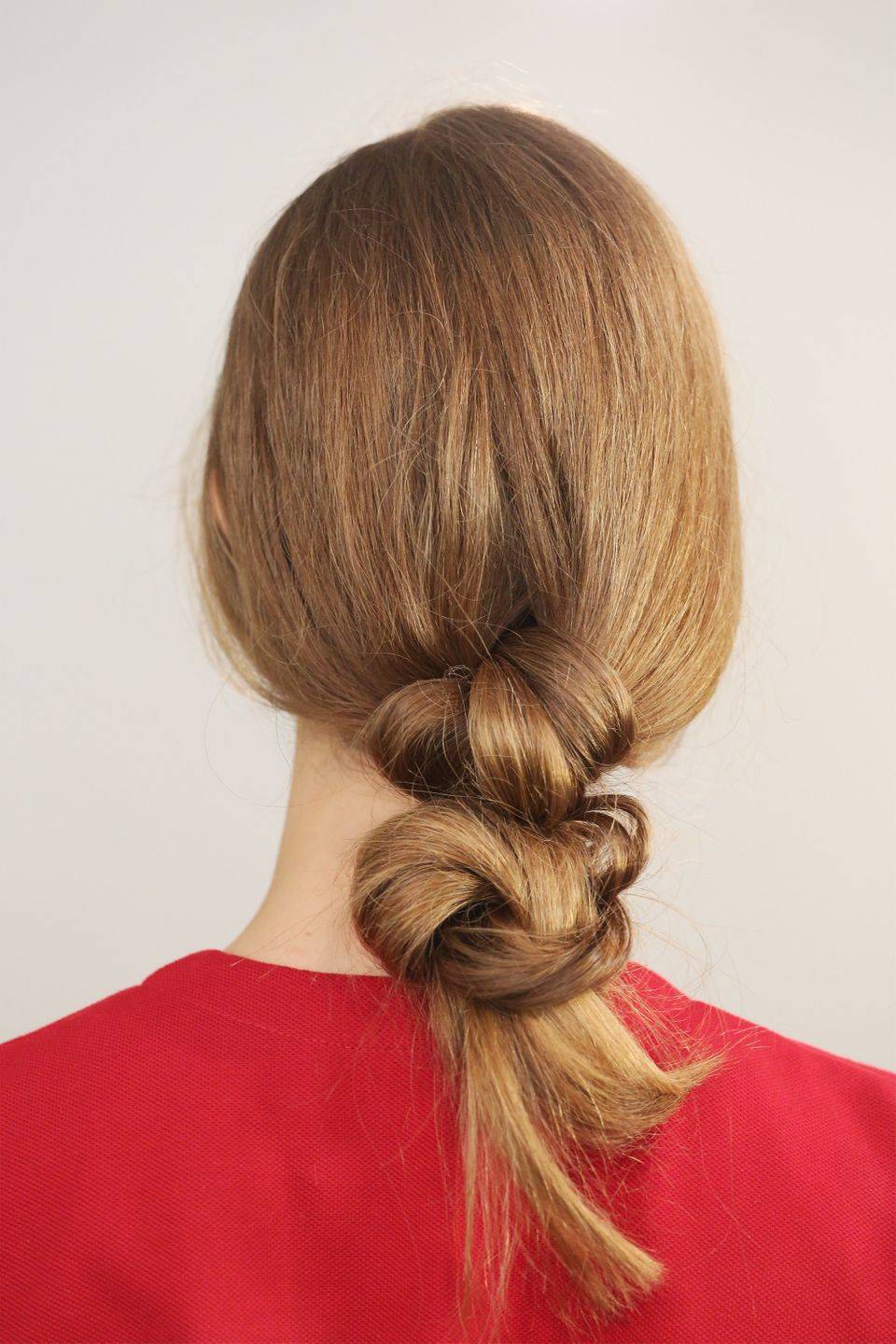 Чтобы создать трендовую прическу с узлом необходимо собрать волосы также как в хвост, при этом не высвобождать их от резинки для волос. Примеры таких укладок вы можете видеть на фото-ниже. Несмотря на повседневный вид такой укладки, она выглядит очень интересно и естественно.