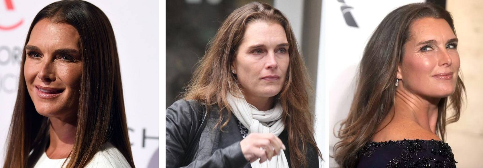 Повзрослев, Брук утратила игривость и сексуальность внешнего облика. Теперь она брутальная дама, строго взирающая на публику без тени улыбки. Единственное, что осталось в ее лице прежним – это брови. Удивительно, что, сравнивая фото Брук Шилдс в молодости с ее современными снимками, не находишь в её лице никаких радикальных отличий – разрез глаз остался прежним, нос и овал лица свои очертания тоже не изменили. Пожалуй, только губы актрисы стали выглядят иначе, так как утратили объем.