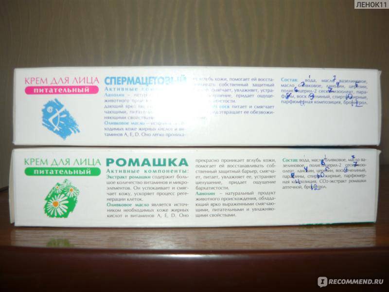 Крем «Спермацетовый» предназначен для ухода за нормальной и сухой кожи. Согласно описанию производителя, это косметическое средство содержит высокое содержание масел и жиров- оливковое масло, пчелиный воск, ланолин.