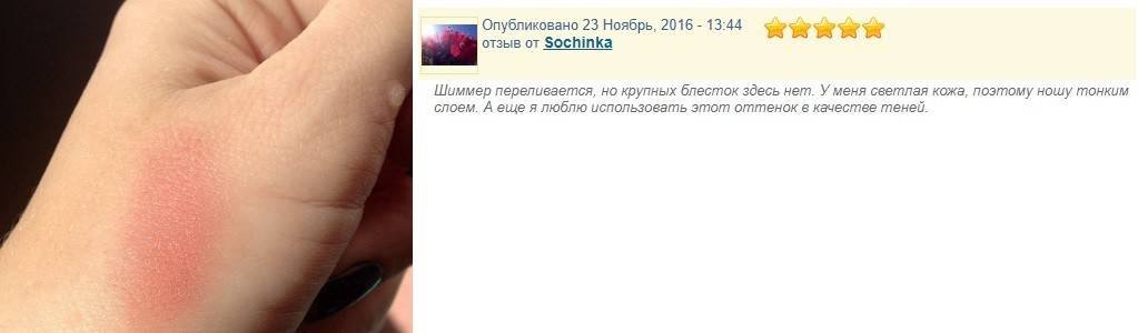 На фото видно, что румяна ложатся, как полупрозрачная вуаль. Оттенок наиболее подходит для тонкой фарфоровой кожи.