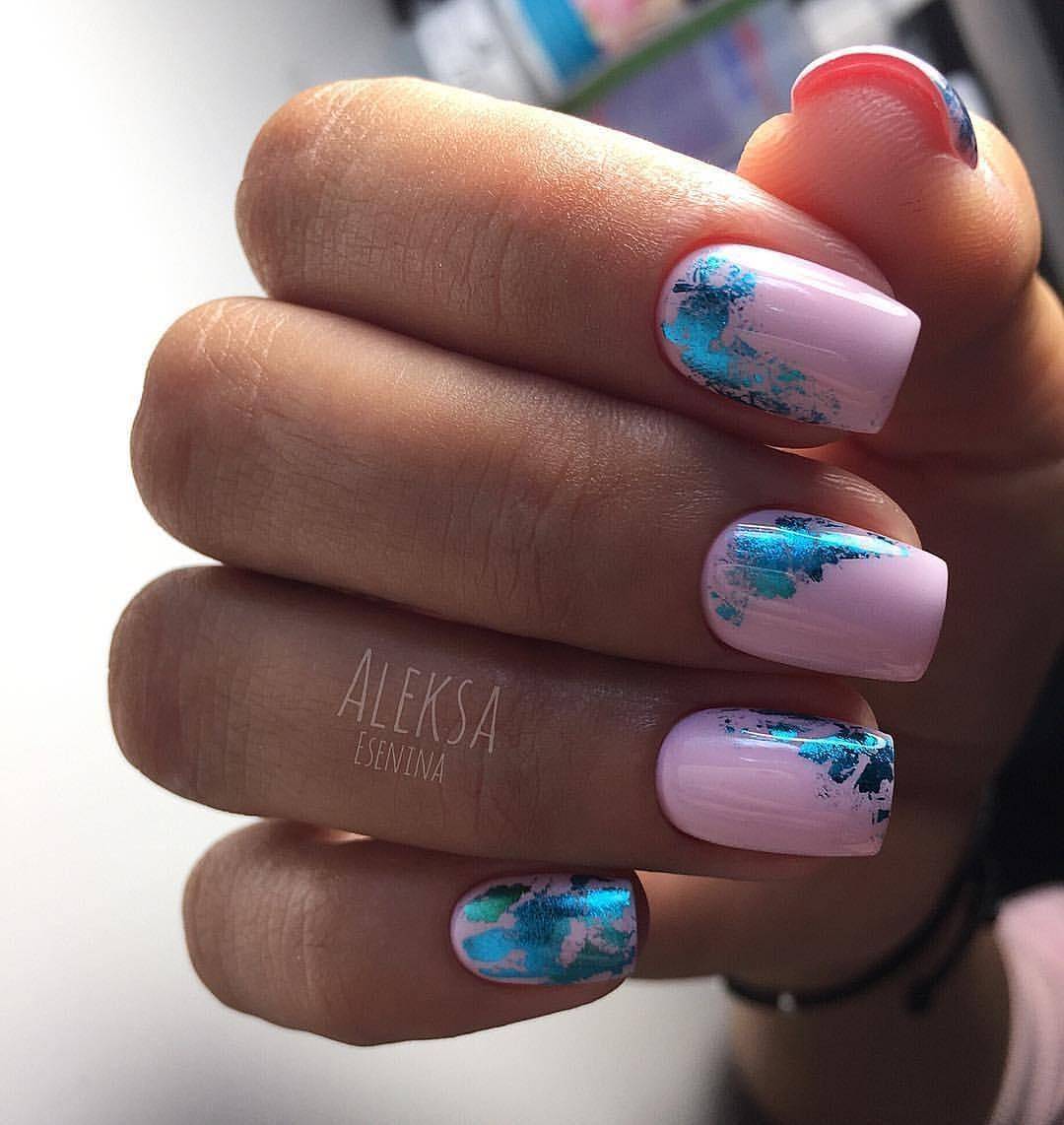 #4 Голубой маникюр с фольгой 2020
