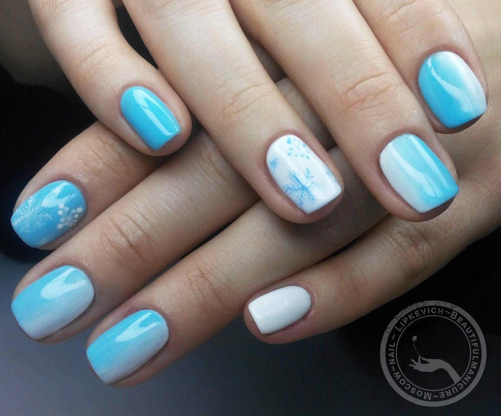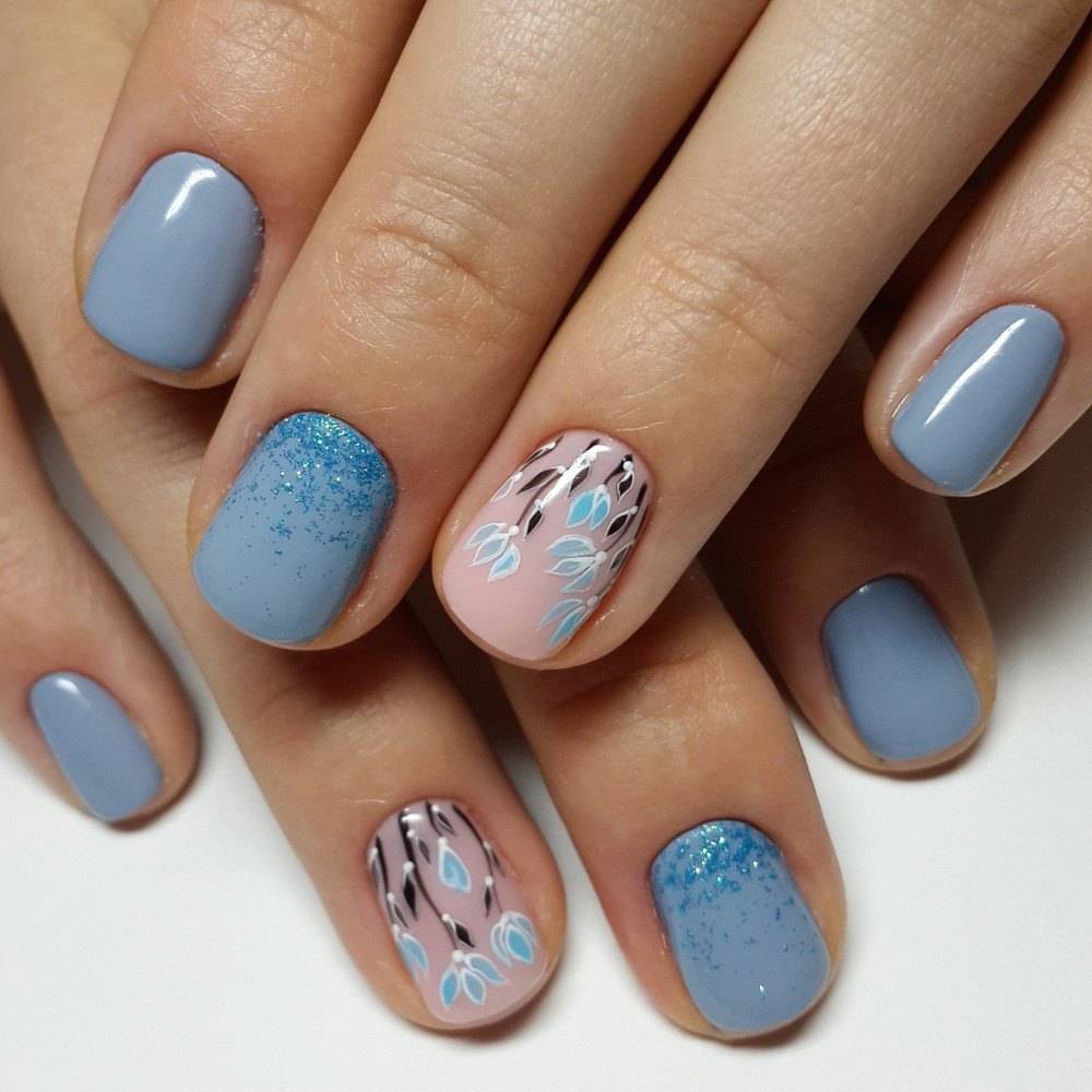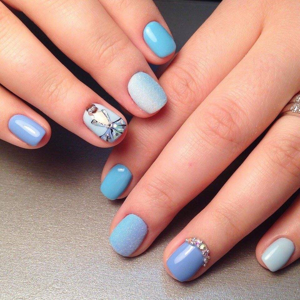 Модные оттенки маникюра с голубым