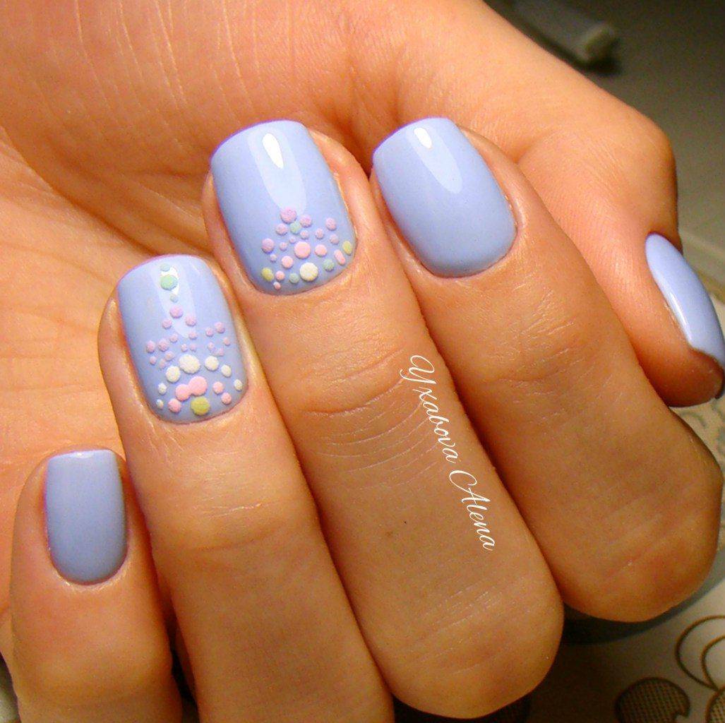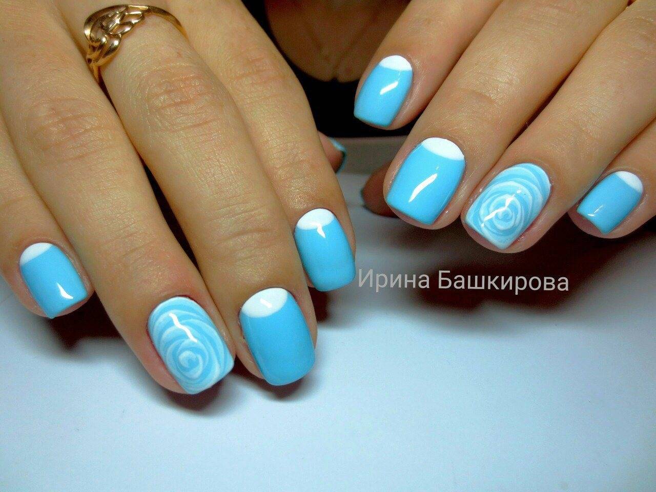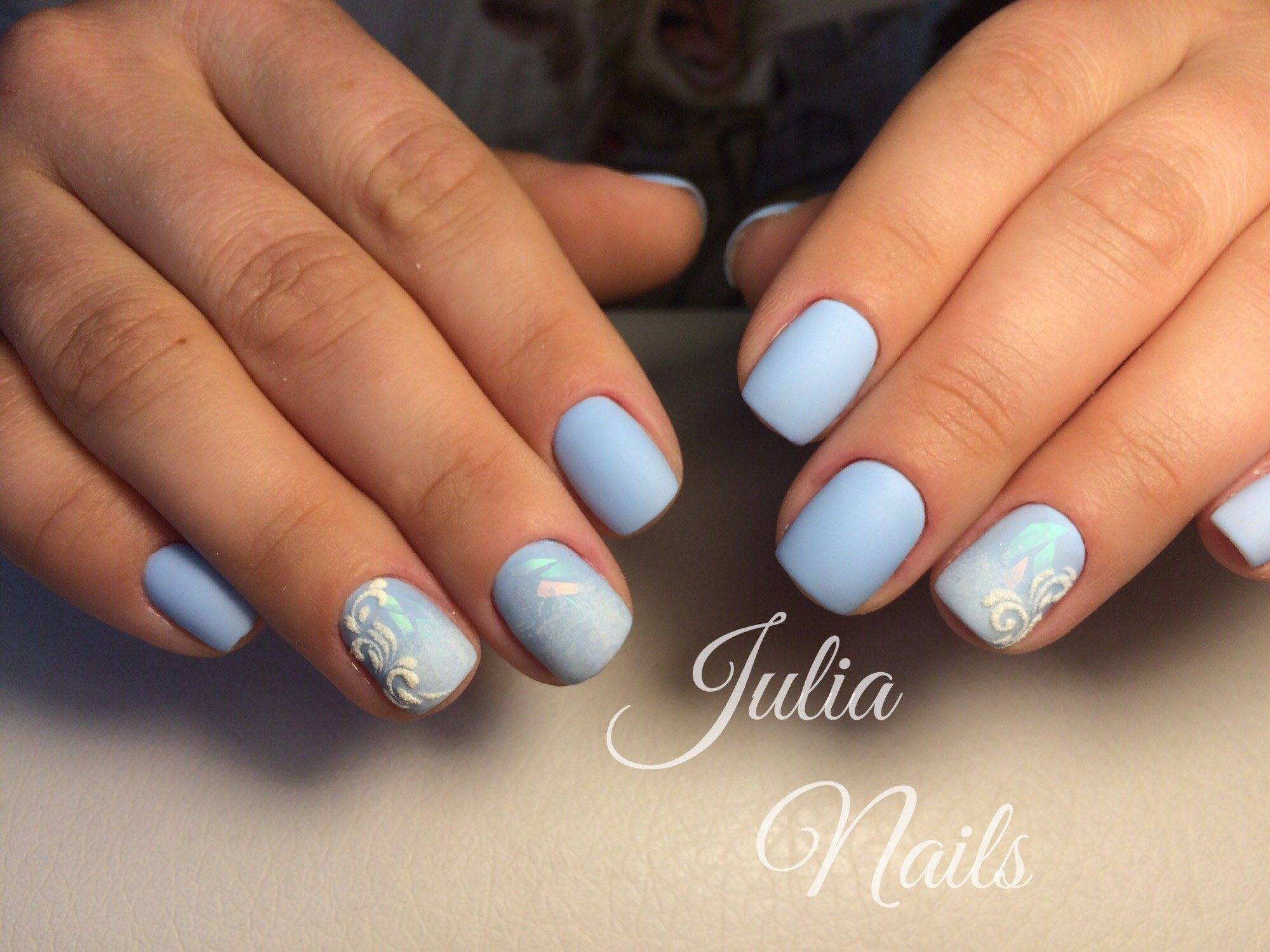 Светло-голубой цвет выигрышно оттенит их, но главное не переусердствовать: подобный декор лучше наносить на 1–2 пальца на руке, чтобы не выглядеть аляписто.