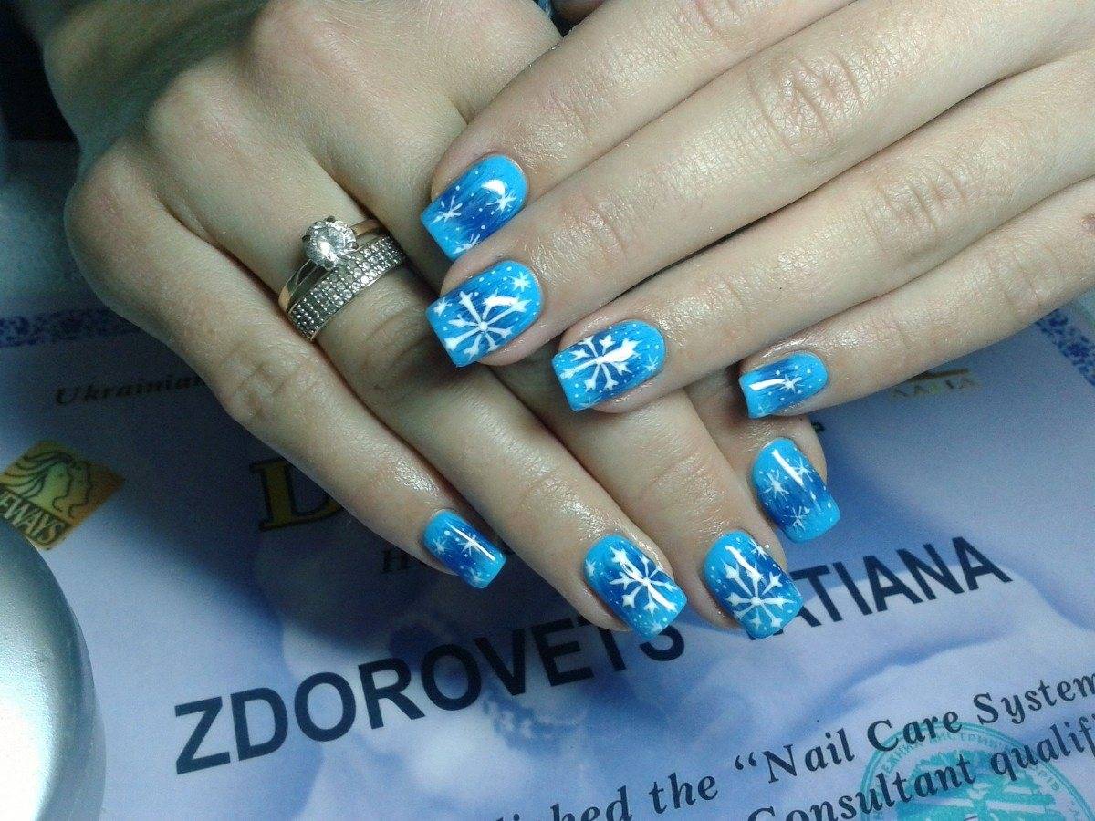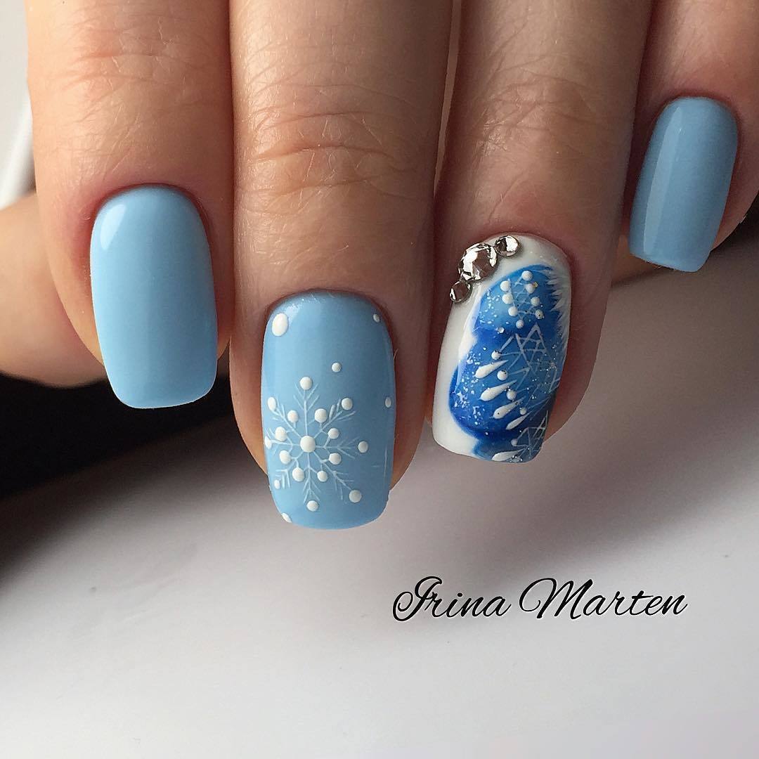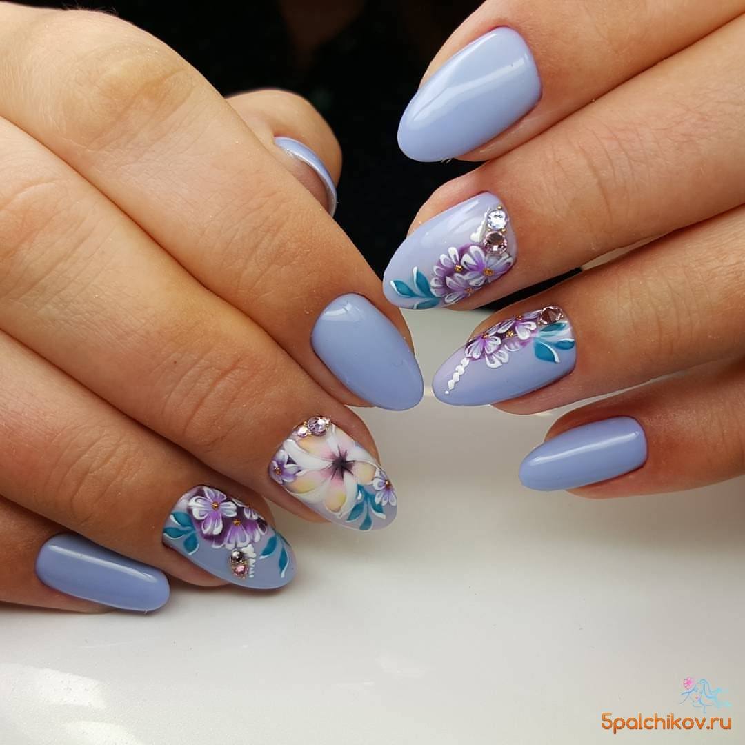 Светло-голубой цвет выигрышно оттенит их, но главное не переусердствовать: подобный декор лучше наносить на 1–2 пальца на руке, чтобы не выглядеть аляписто.