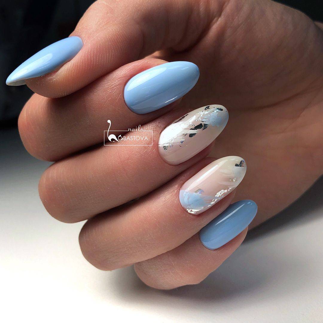 Немаловажное значение в создании идеального голубового маникюра имеет форма ногтей. В этом сезоне популярны естественные формы – овал, миндаль, мягкий квадрат
