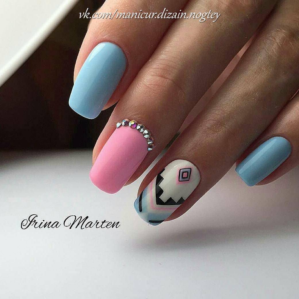 Трендовый тандем голубого и розового подходит для весеннего или летнего маникюра