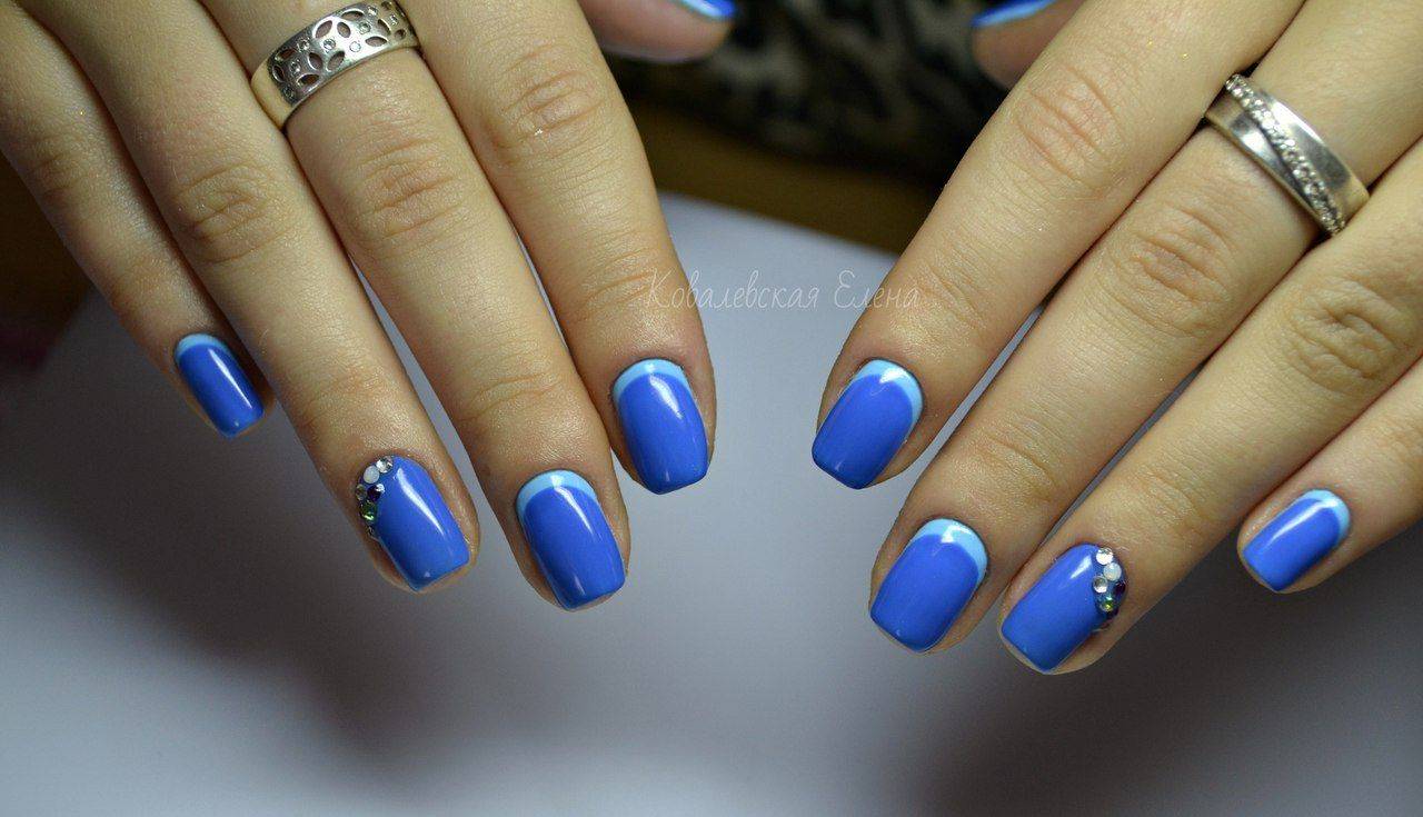 Голубой маникюр на коротких ногтях