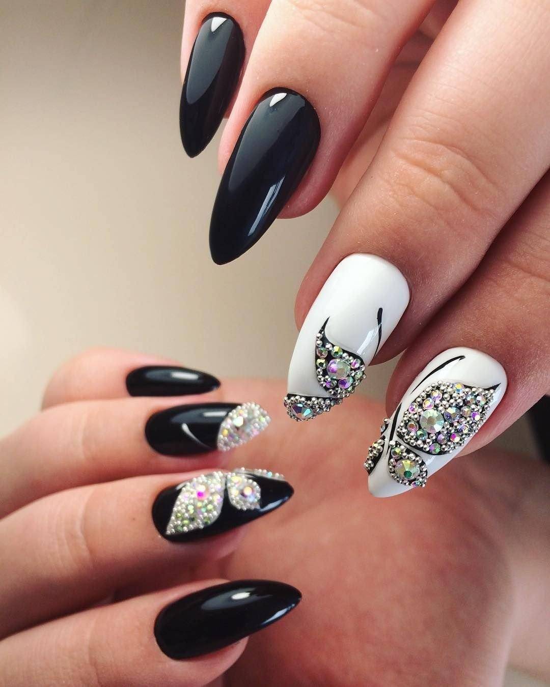 Черный маникюр великолепно смотрится на длинных миндальных и квадратных ногтях