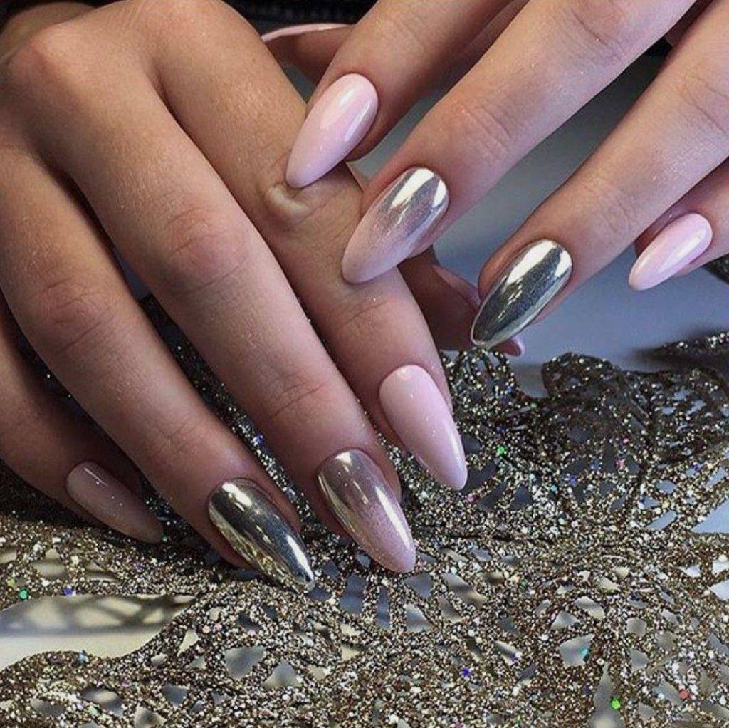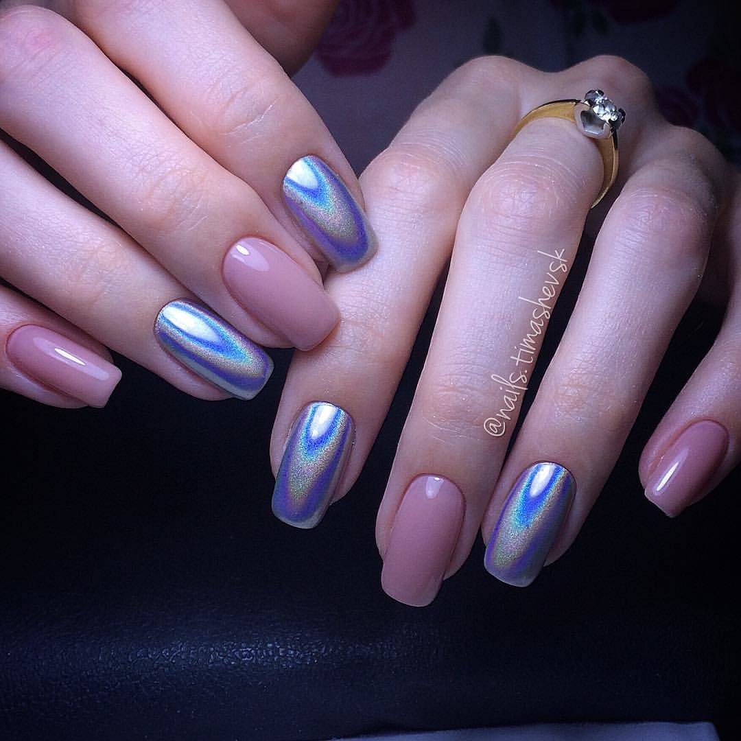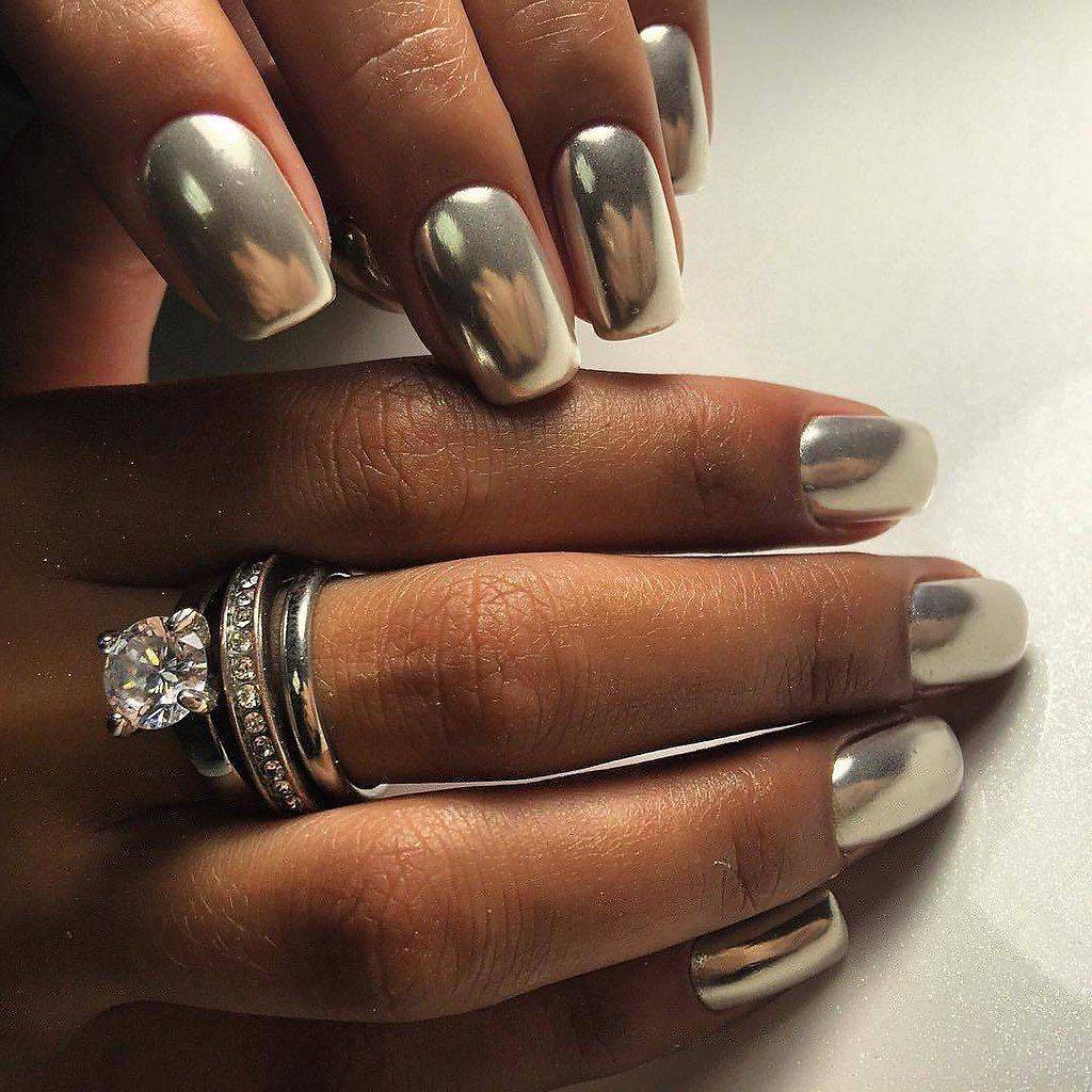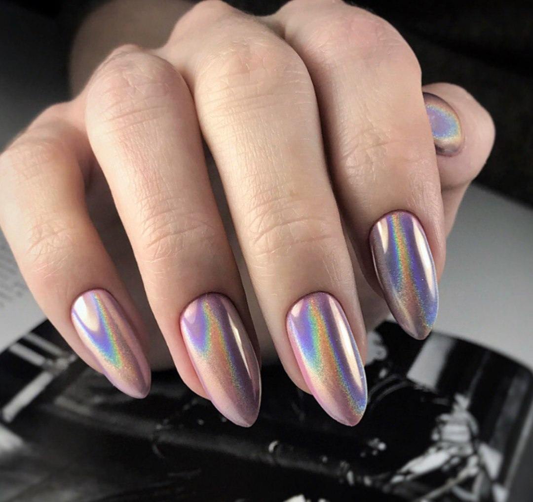 Стильный зеркальный маникюр на ногти любой длины