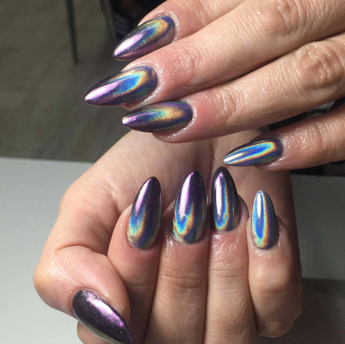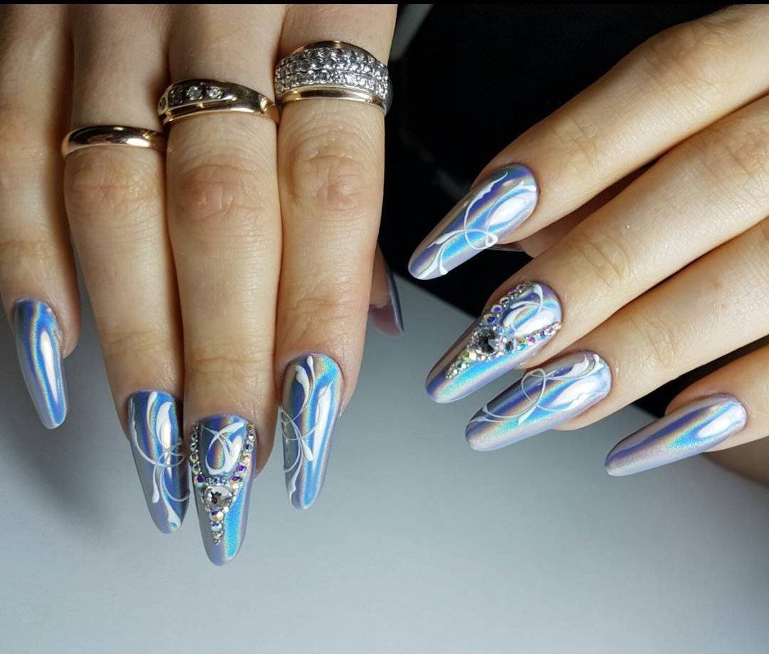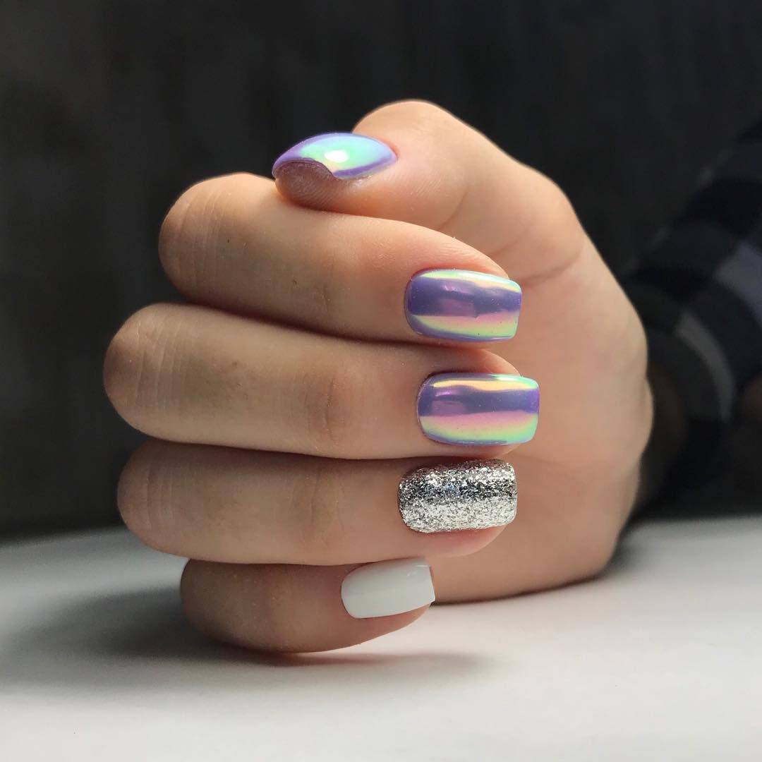 Стильный зеркальный маникюр на ногти любой длины