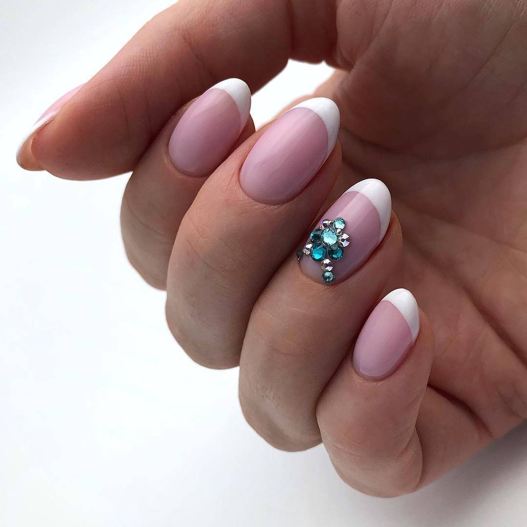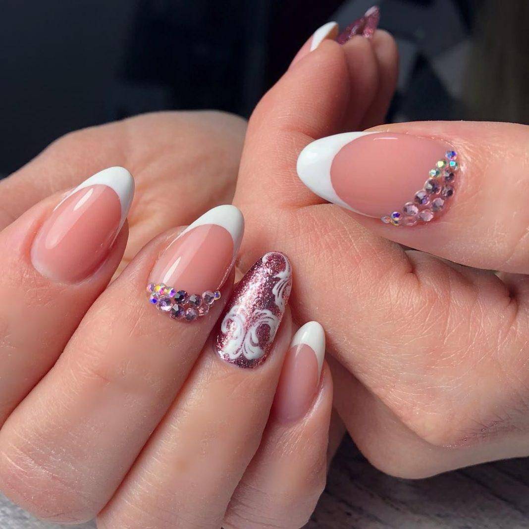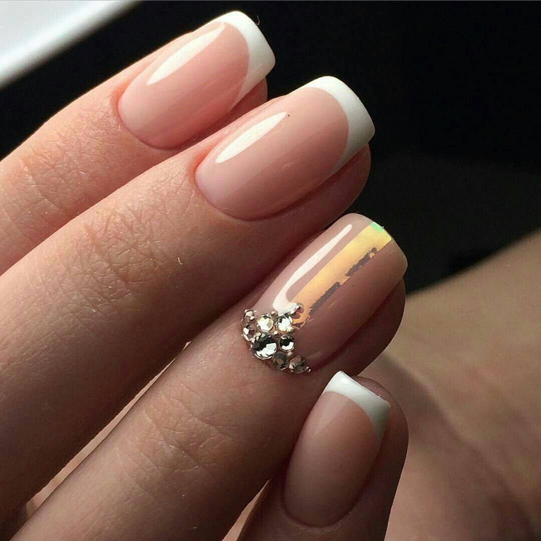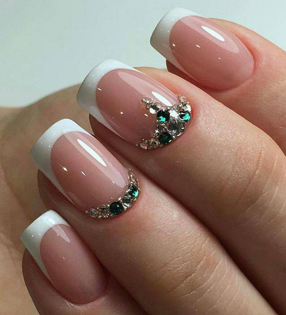 модные ногти френч со стразами 2018 год тенденции
