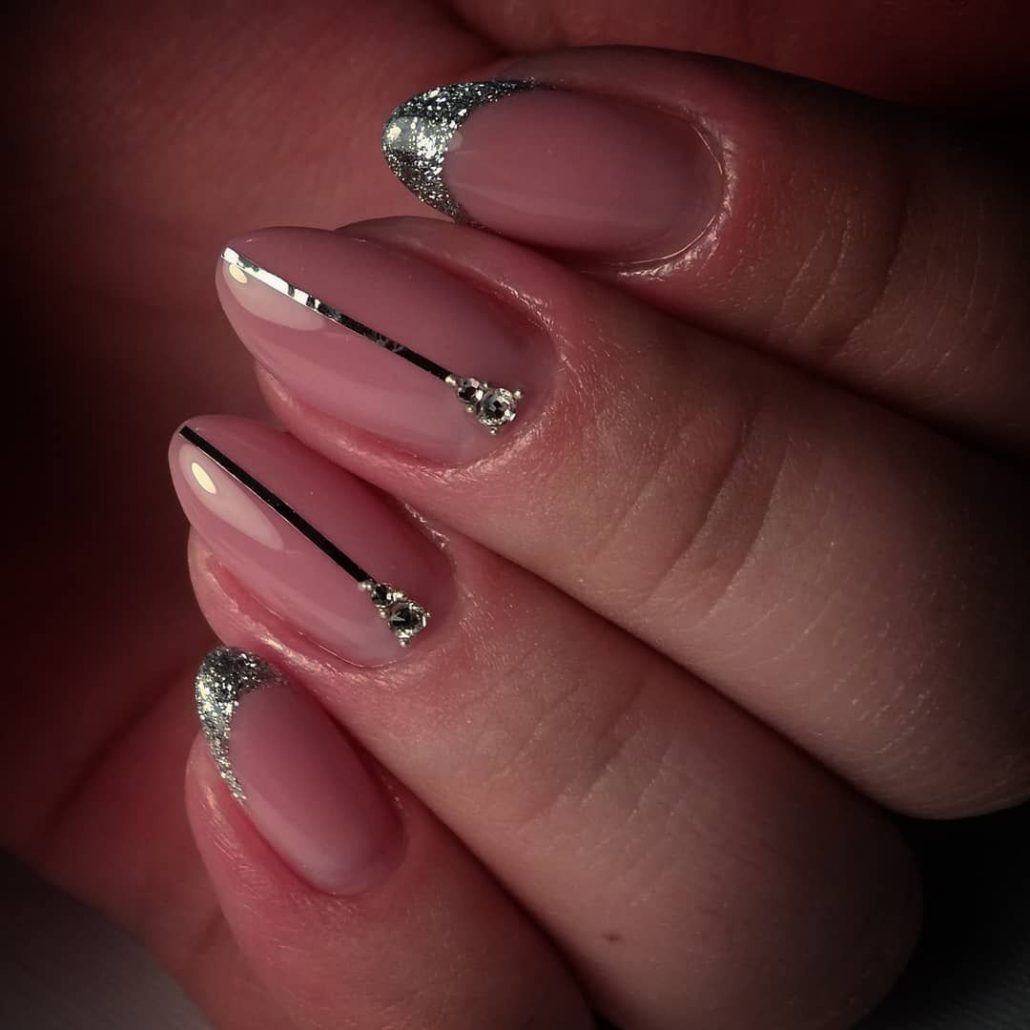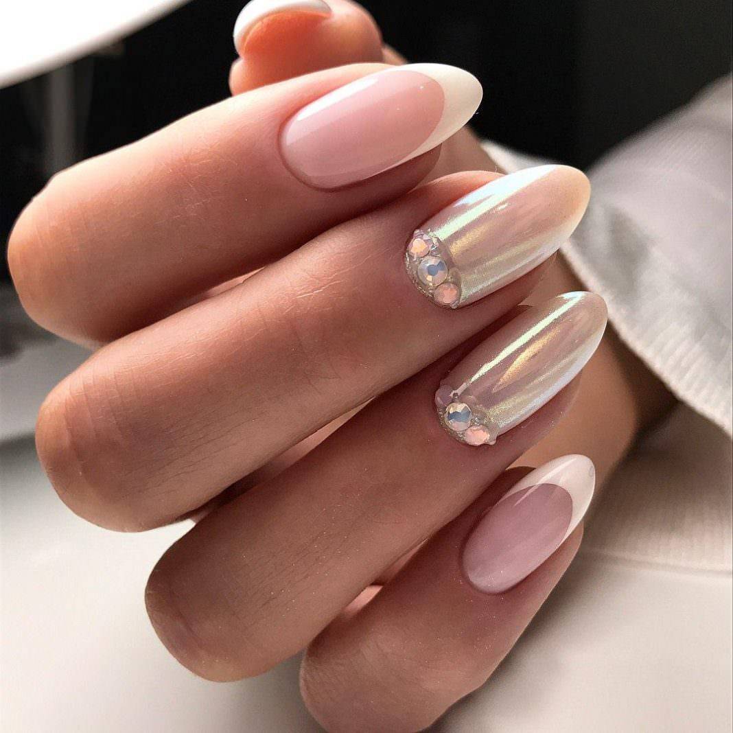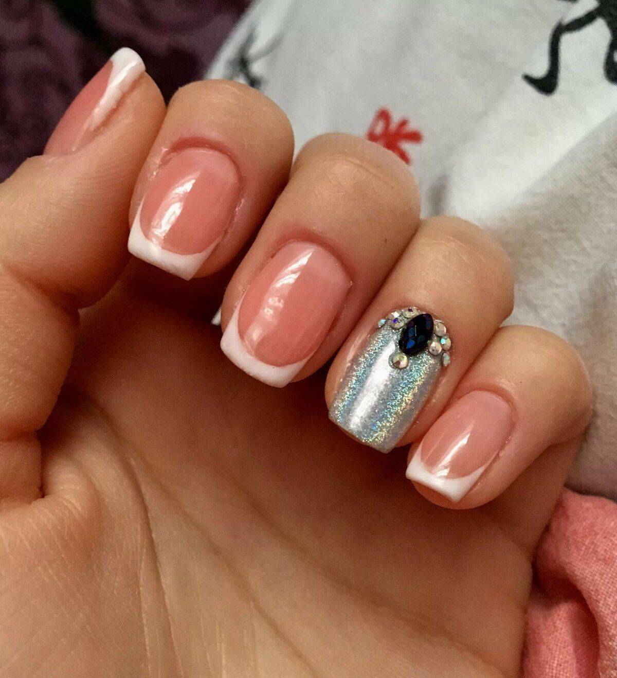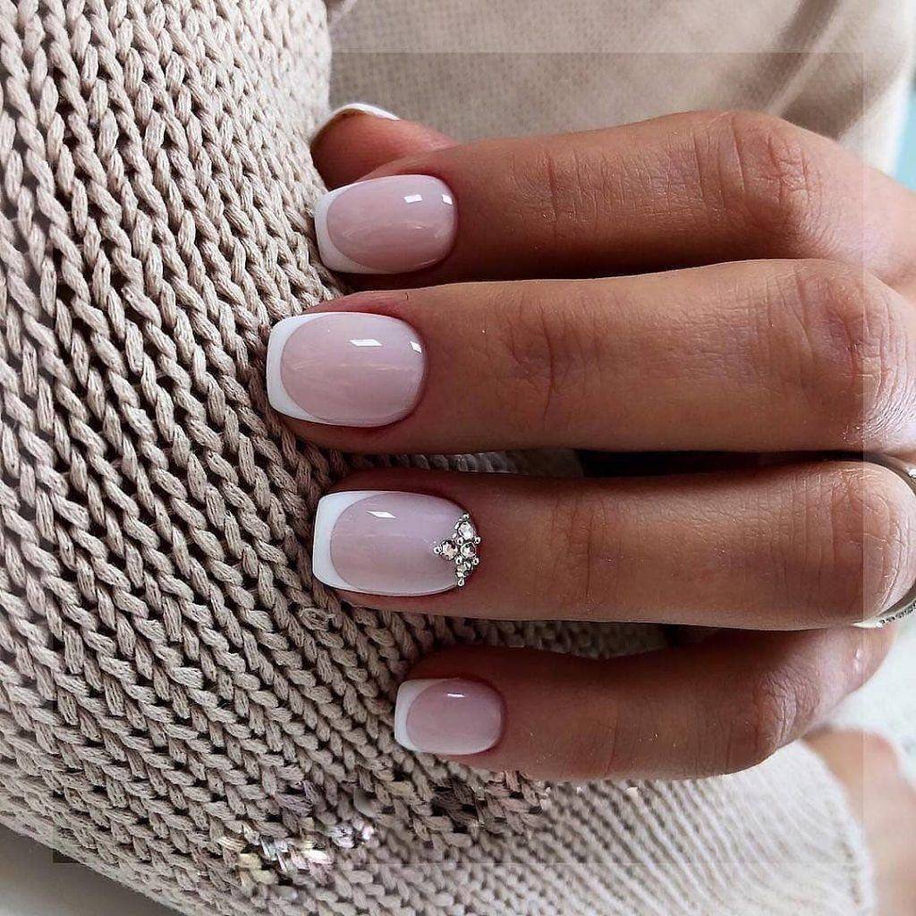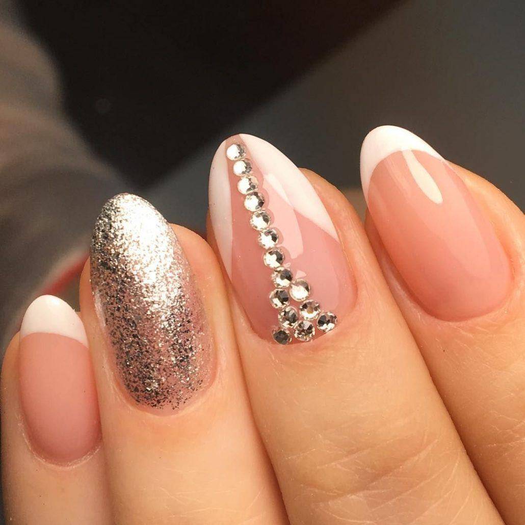 модные ногти френч со стразами 2018 год тенденции