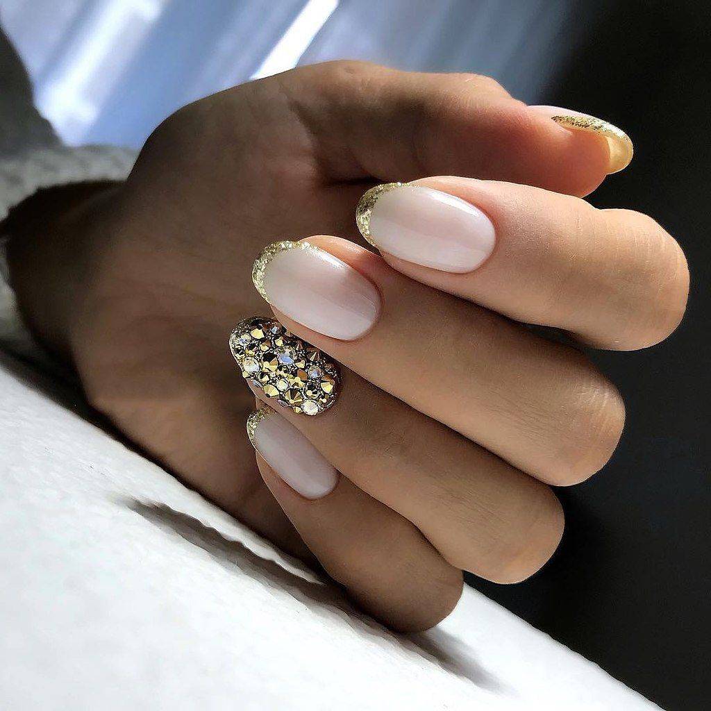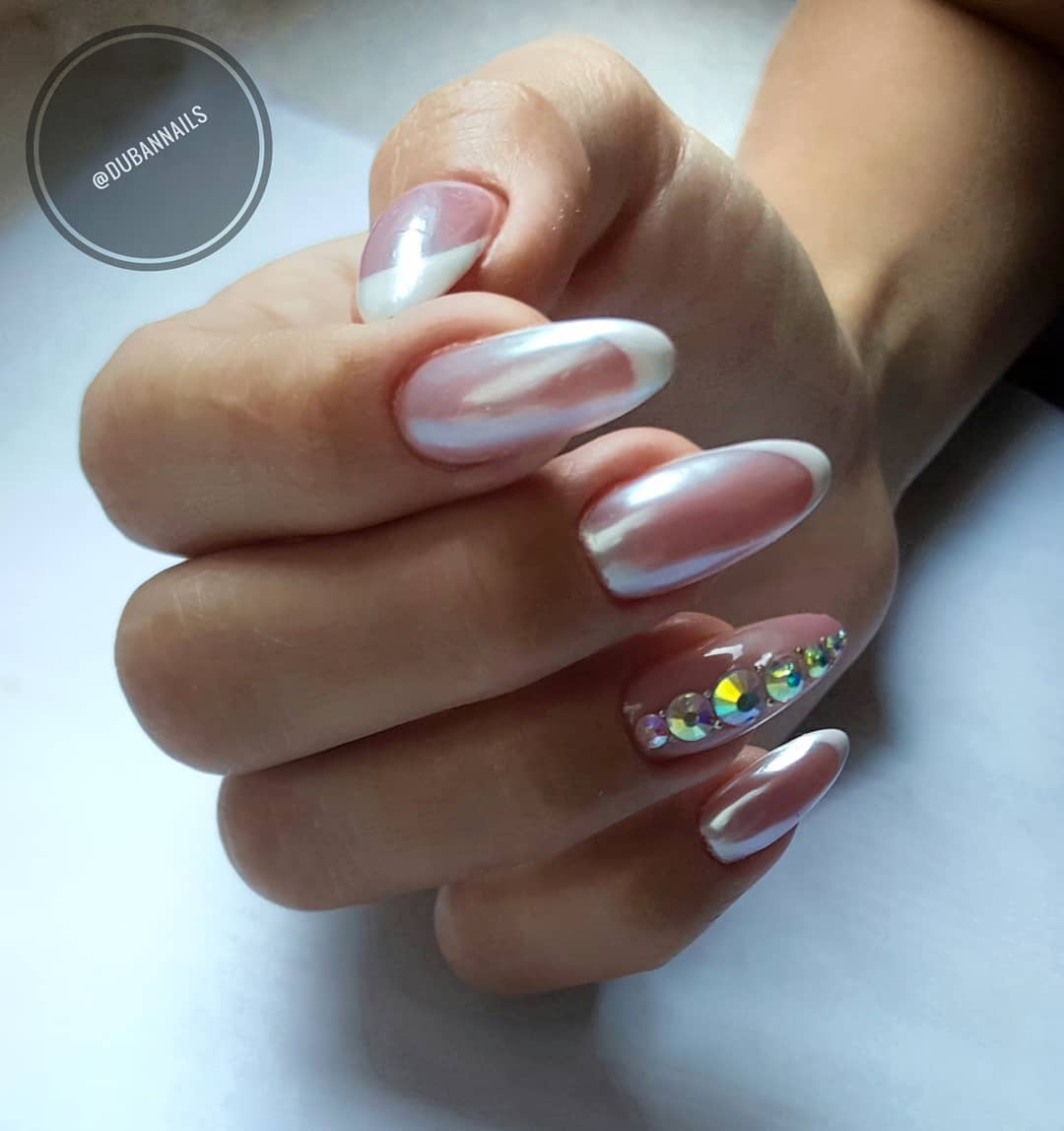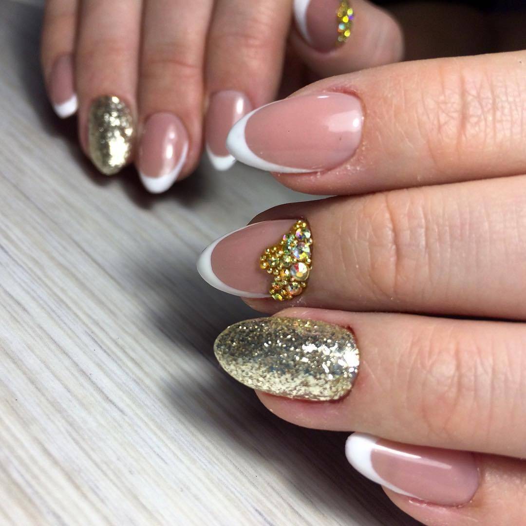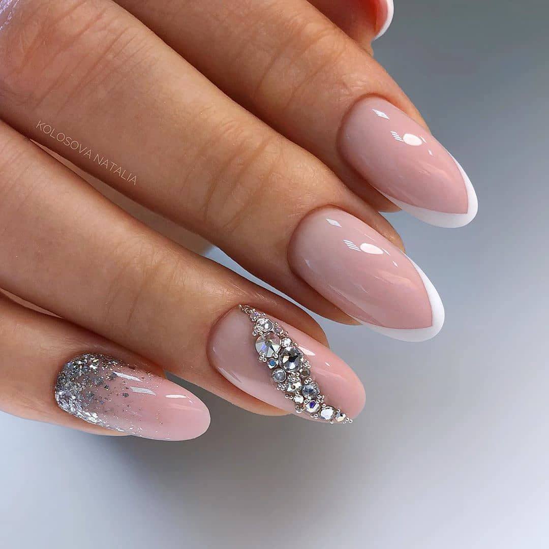 модные ногти френч со стразами 2018 год тенденции