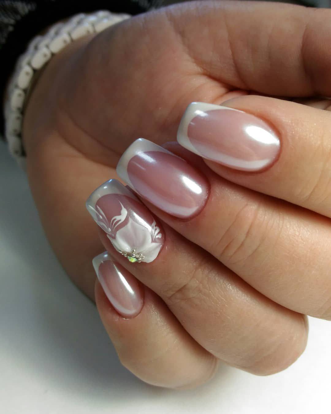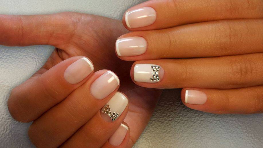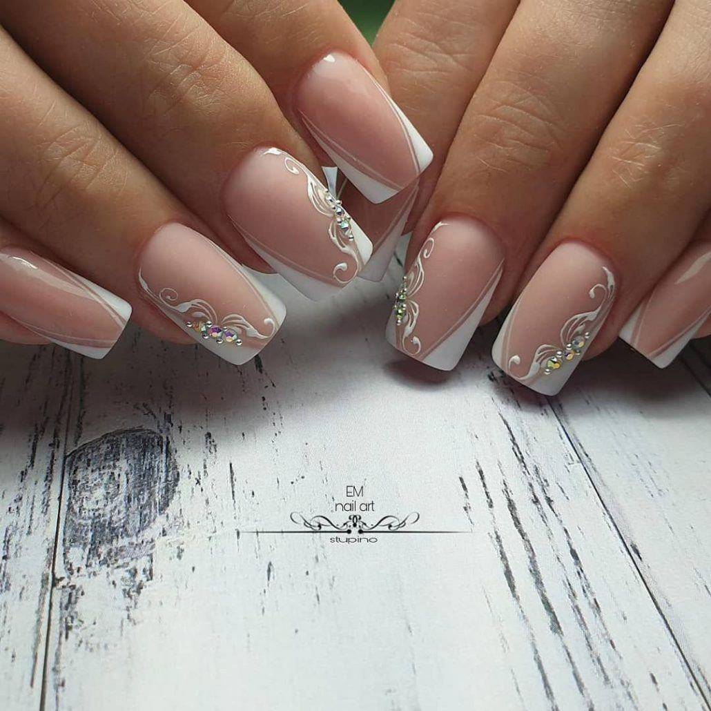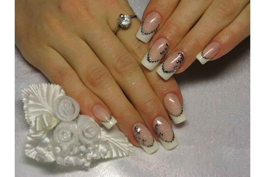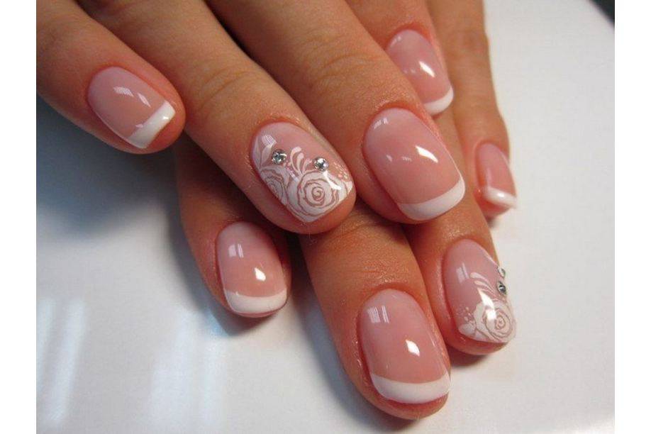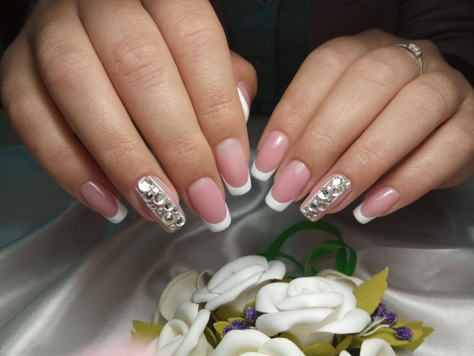 Просматривая фото белого френча, можно отметить как он хорош сам по себе, но для особого случая подойдёт дополнительное декорирование. Для этого нужно сделать: