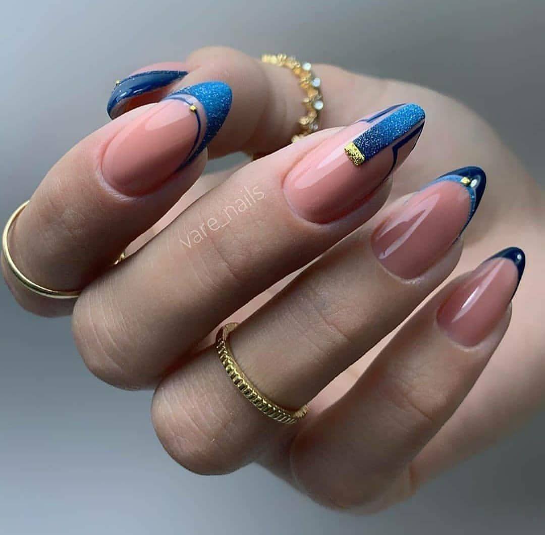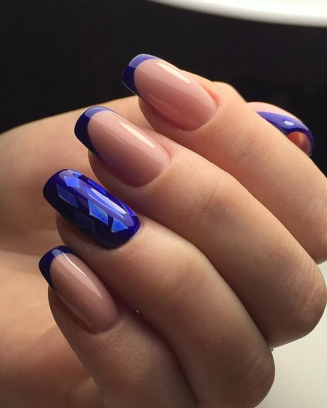 модные ногти френч синие с бежевым 2018 год зимние