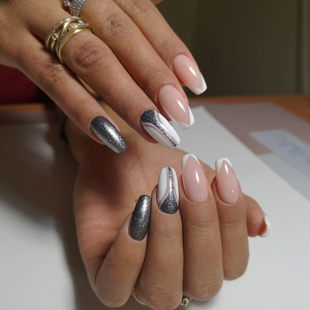 Белый френч на ногтях разной формы и длины