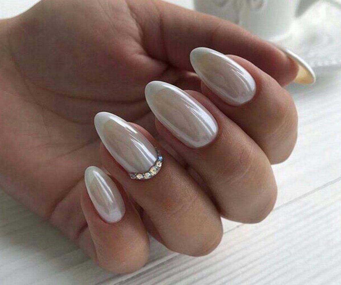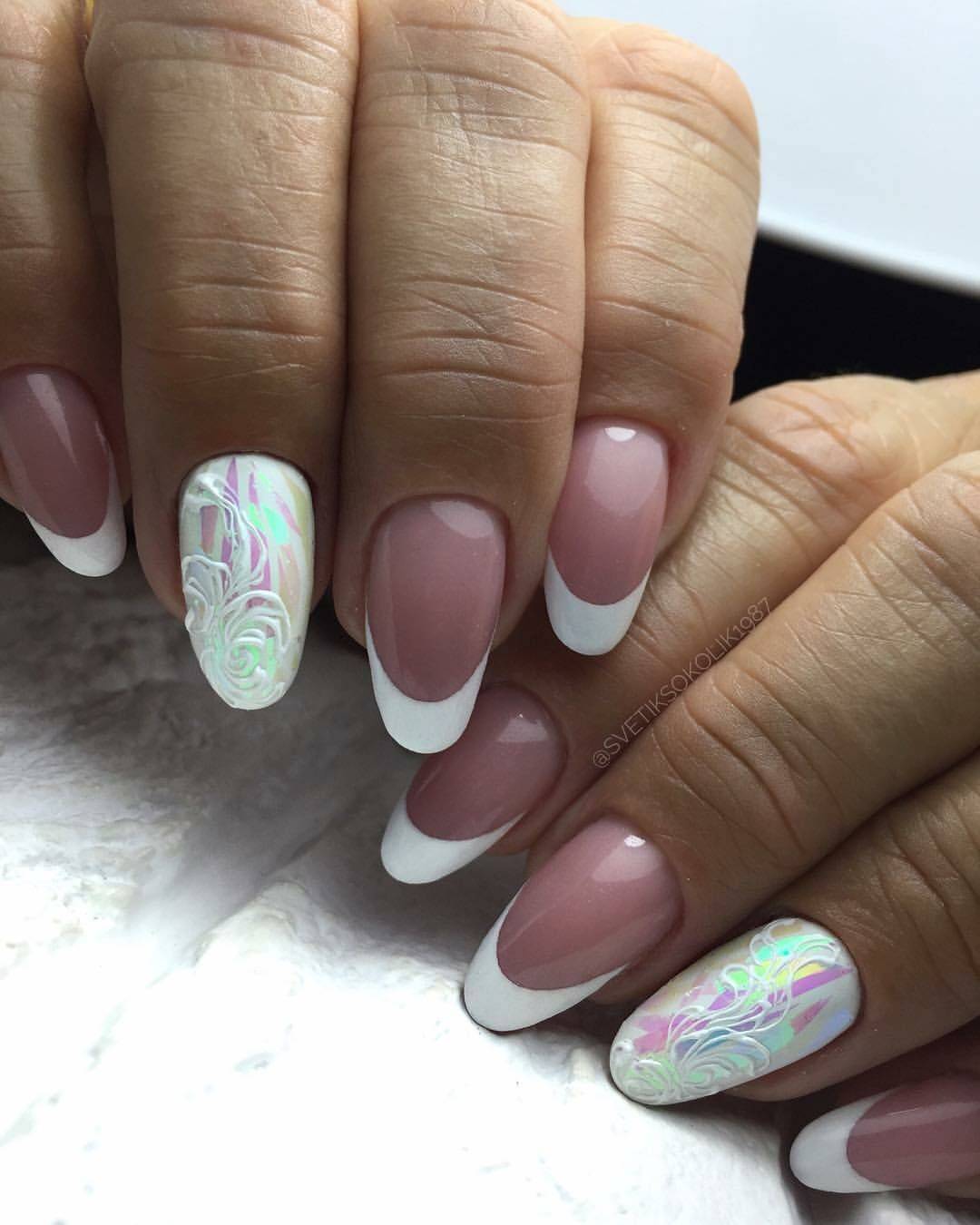 Белый френч на миндалевидных ногтях