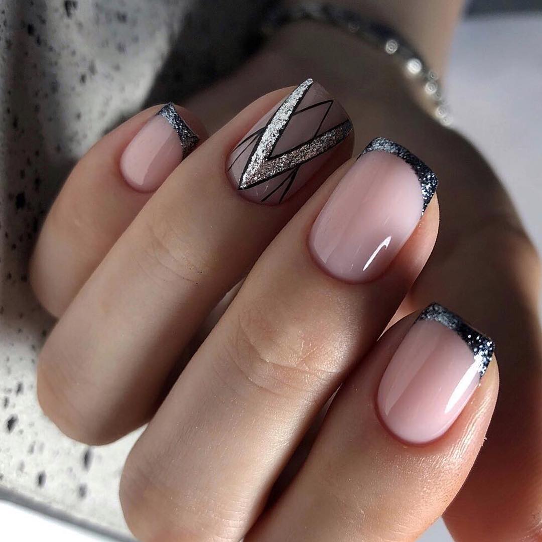 #5 Нежный френч с блестками