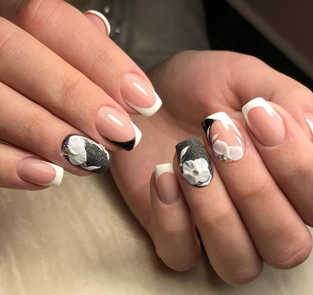 Данный маникюр можно смело использовать для мероприятия любой тематики, а также повседневного дизайна ногтей. Он смотрится достаточно скромно, строго и сдержанно. Если хочется разбавить умеренный черно-белый френч, можно использовать множество методов, но самый привлекательный и шикарный из них – это рисунок