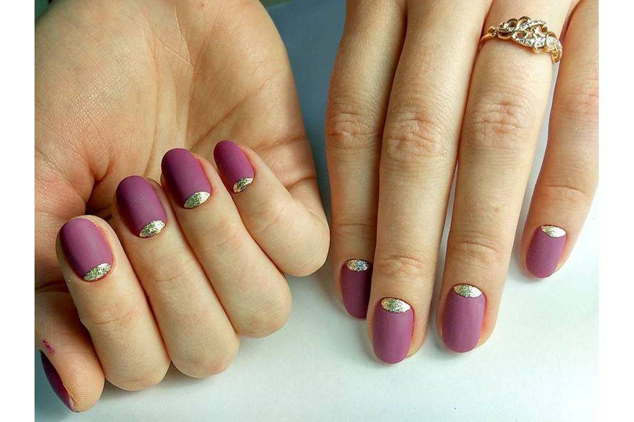 Такой маникюр может быть также матовым и глянцевым. Чтобы внести хоть какое-то разнообразие в однотонный маникюр, можно основную часть ногтя покрыть матовым лаком, а улыбку сделать глянцевой. Или же наоборот. Однако цвета и улыбки и основной части ногтя должны быть одинаковыми по цвету.
