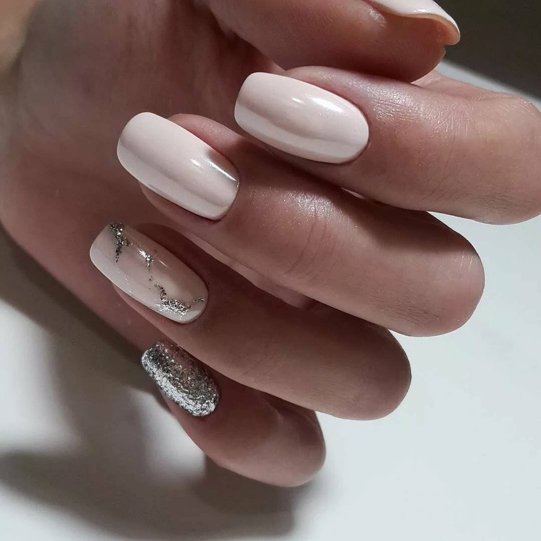#3 Маникюр молочного цвета с серебром