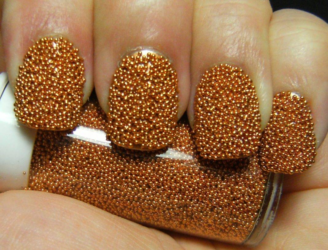 Бульонки для ногтей – это малюсенький бисер. По внешнему виду он похож на бусинки или мелкие шарики. Своё название «икорный маникюр» получил благодаря схожести бульонок с мелкими икринками. По диаметру они могут быть совсем мелкими песчинками или же крупными стразами.