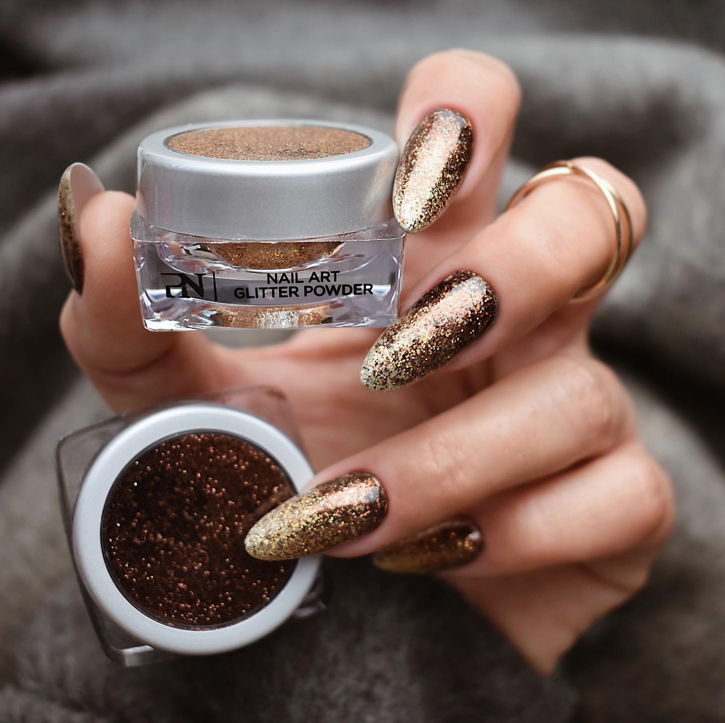 - Блестящая акриловая пудра смотрится на ногтях очень броско и ярко, поэтому не стоит украшать с её помощью все ногти сразу – разве что для какого-то торжественного события. Для повседневной носки подойдёт маникюр, с одним-двумя блестящими ноготками;