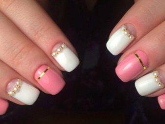 Очень красиво смотрится французский маникюр, где бусинки используют в качестве декора.
