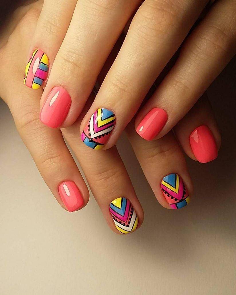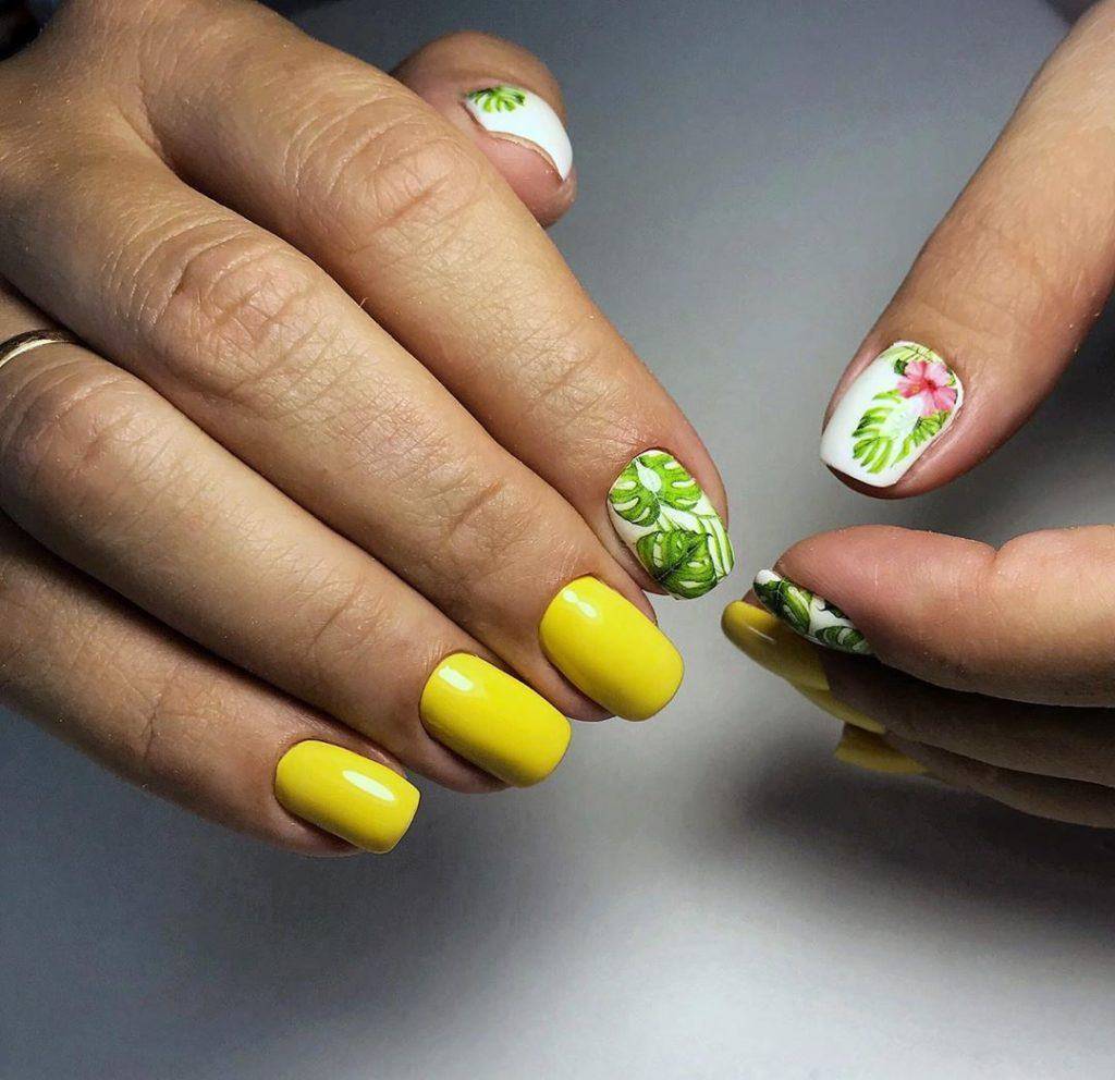 В тренде разноцветный маникюр, маникюр «разные ручки», сочные нейл-арты с фруктами, пальмами, монстерой и другим летним декором. Стильно смотрится дизайн с капкейками, донатсами и другими сладостями. Примеры ярких нейл-артов вы сможете найти в фотогалерее в конце обзора.