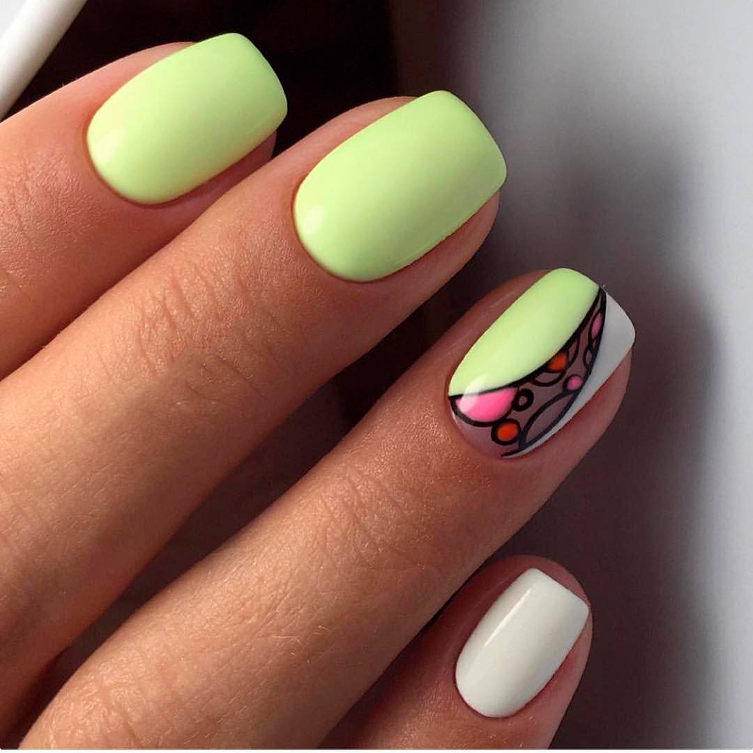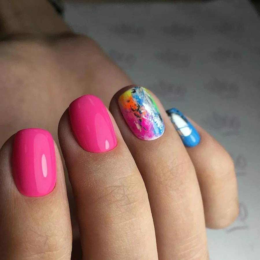 #7 Яркий маникюр на короткие квадратные ногти 2020