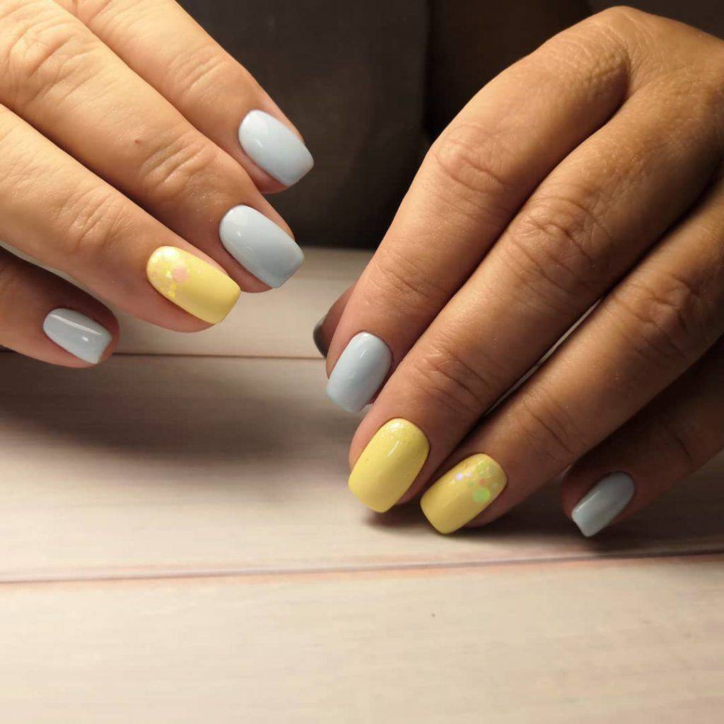 Для коротких ногтей достаточно сложно подобрать идеальный оттенок гель-лака. Слишком яркие неоновые тона использовать не рекомендуется, однако сочные желтые, розовые, синие, красные оттенки вполне лаконично смотрятся на квадратной форме.